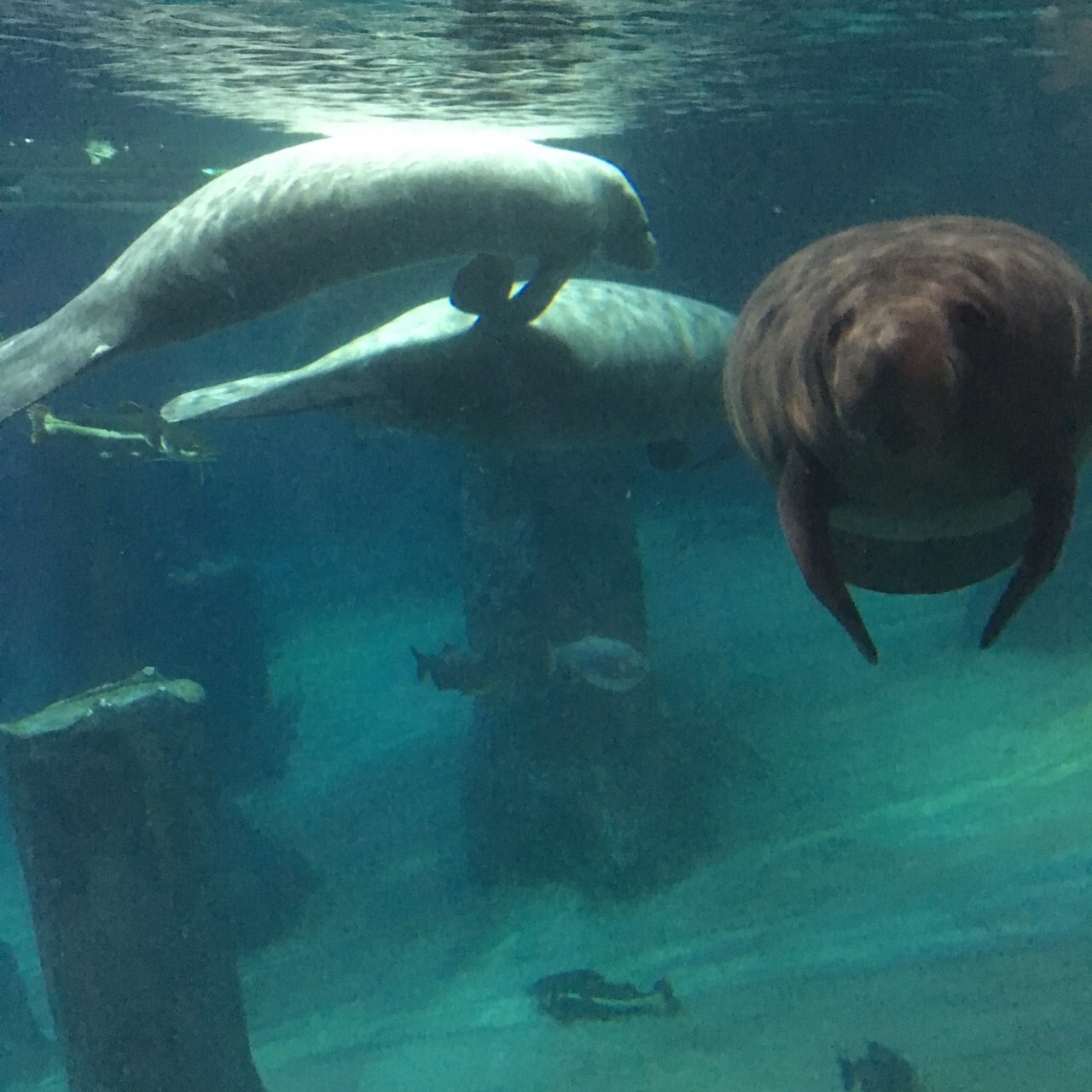 アマゾン浸水林のマナティーはちょうど食事中。エサは白菜?のようでした。