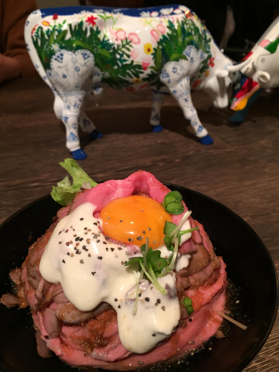 祝日のランチで来店。開店前の11時20分位に着きましたが、既にコメダの前まで長蛇の列。途中、民家の前なのか並ぶ場所が途切れているので、少し分かりにくいですが、最後尾の看板はありました。案内の店員さん言わく1時間も待たないと言われ、結局40分位で入ることが出来ました。待っている間に店員さんの誘導で食券を先に買いに行きます。お店に入り、食券して席に着くと数分でローストビーフ丼が運ばれて来ました。席は長テーブルに相席のように座っていくので、ゆっくりと食べる雰囲気ではありませんが、その分開店は早いです。