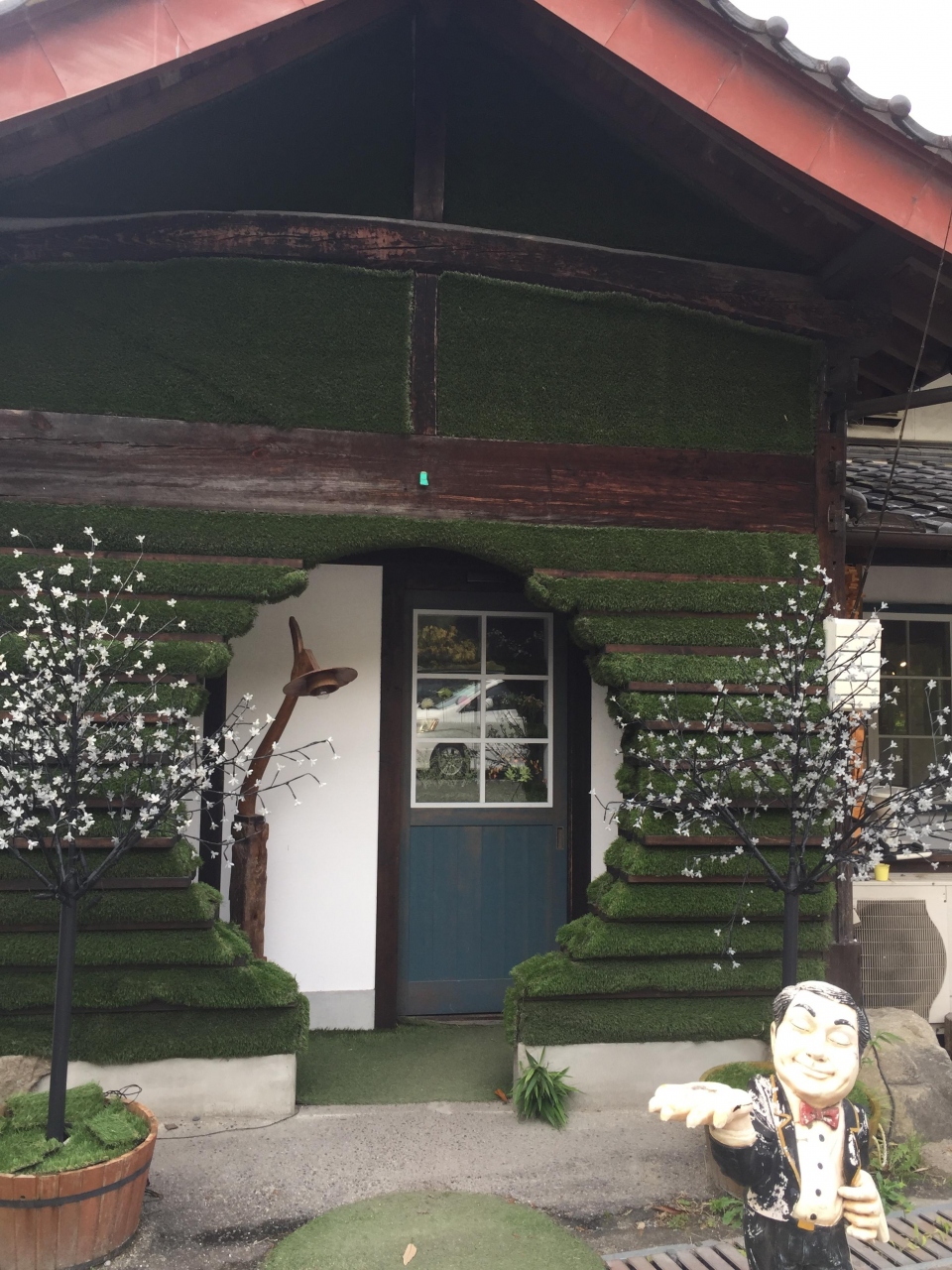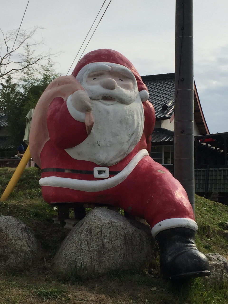豊田市街から鞍ヶ池公園を越え、東海環状自動車道の鞍ヶ池スマートICからすぐ。左側に見えて来る古民家風のお店です。12月ということで、道路沿いにクリスマスツリーとサンタクロースがお出迎え。