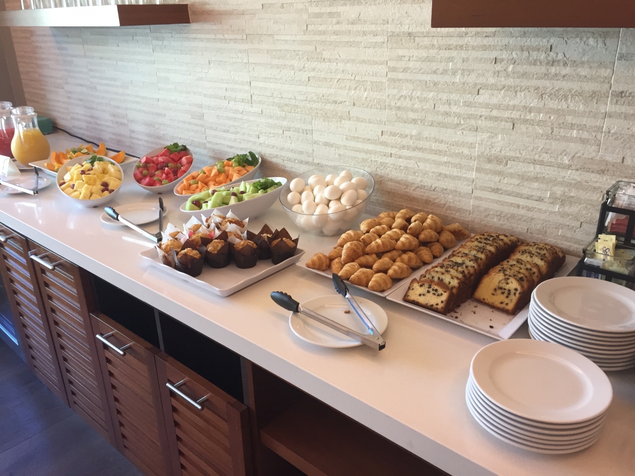 ラウンジのコンチネンタルブレックファーストは、持ち帰って部屋で楽しむことが出来ます。イブニングププサービスはラウンジのみですが、何度か利用しましたが、毎回料理が違っていて楽しみでした。