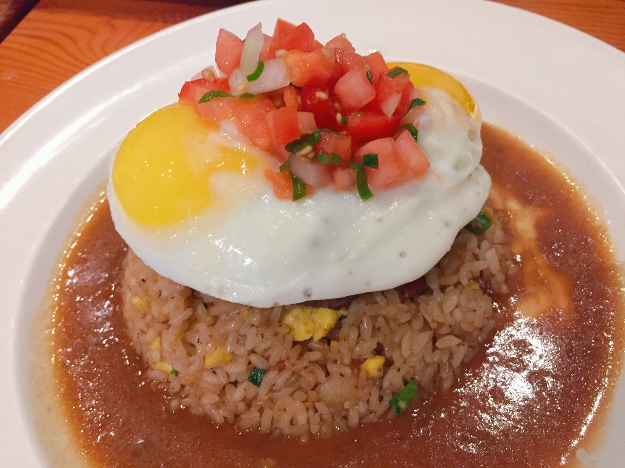 メニューは英語のみですが、事前に決めていたロコモコ×2・パイナップルルームバーガー・カルビシヨートリブ・カリマリサラダをオーダー。ロコモコのご飯は炒飯になっています。味が濃いかなと思いましたが、意外と食べやすかったです。ハンバーグはボリューム満点!肉々して美味しいです。カリブショートリブはご飯がロコモコと同じく炒飯。甘辛の韓国風の味付けでお肉も柔らかく美味しかったです。- 旅行時期