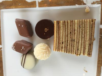 その後のワゴンスイーツ。すでにお腹いっぱいでしたが、チョコレートとバームクーヘンを頂きました。