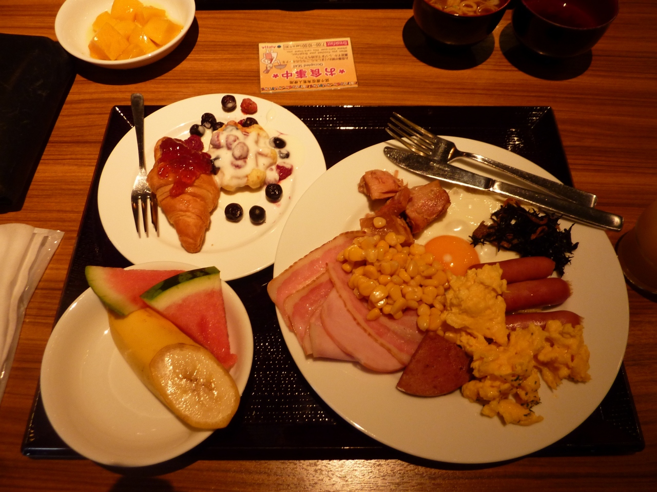 このホテルに予約するときは朝食付きにすることをお勧めします。バイキング形式ですが、特に種類が豊富です!夫は典型的な西洋の朝食(ベーコンエッグとかハムとか)が好みのようでしたが、私は沖縄特有の海ブドウサラダやラフテーなどを食べました。沖縄料理が苦手な人は、焼き魚にひじきに温泉卵に味噌汁など、一般的な料理を選ぶこともできるので、あらゆる好みに対応していると思いました。