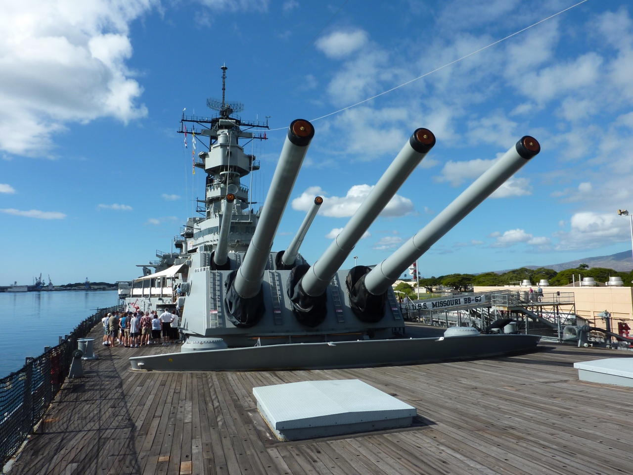 戦艦ミズーリは第2次世界大戦で日本とも戦った戦艦です。20分程度の英語によるガイドが付き、戦艦の設備などを説明してくれます。第2次世界大戦が終結したときの調印式が行われたのもここで、日本人の代表によるサインやそのときの写真も見ることができます。日本人として心にぐっと来たのはガイドさんが日本の特攻隊が戦艦に攻撃したときにできたへこみを見せたときです。そのとき偶然捉えた写真も残っており、決死の思いで攻撃してきたであろう特攻隊の思いが伝わるようで思わず涙しました。