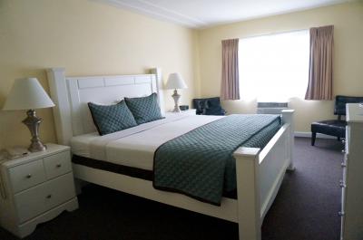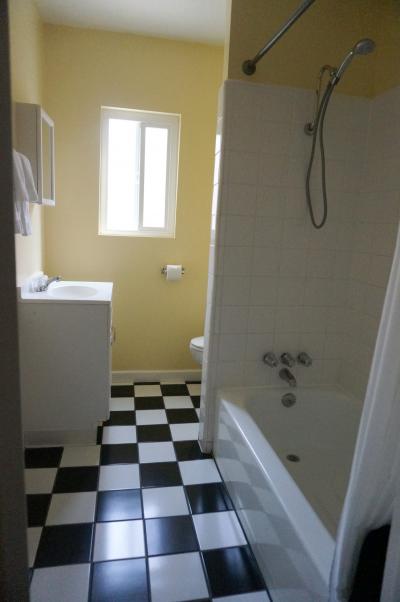 ベッドルームは広いしバスルームも広々です。