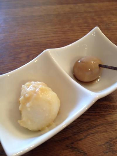 半熟卵ダシ醤油漬けとフランスうずらの卵で作った半熟卵西京味噌漬けを頂くことができました\(^o^)/美味しかったぁ~♪