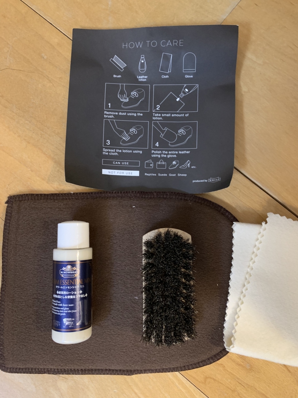 一番驚いたのは、革靴磨きの為のレザーケアkitなるモノ。