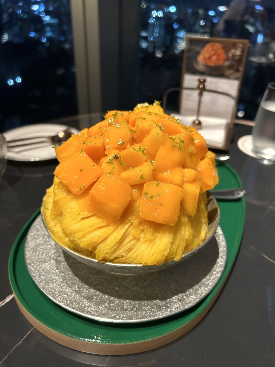 25階のBarに興味本位、軽い気持ちで行き、周りのほとんどの若者が食べていたマンゴーハッピンスが美味しそうだったので、勢いで注文したら、なんとKRW120000(約12000円)もして、もう笑うしかない。←老眼でゼロを見誤ってました。
