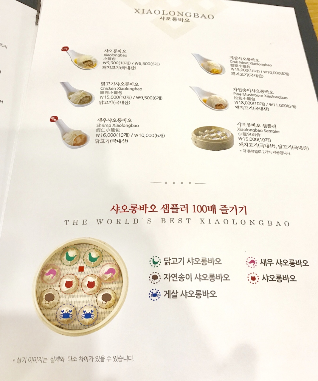 小籠包は、他に蟹、海老、鶏、松茸があり、mix10ケKRW15000ってのもありました。