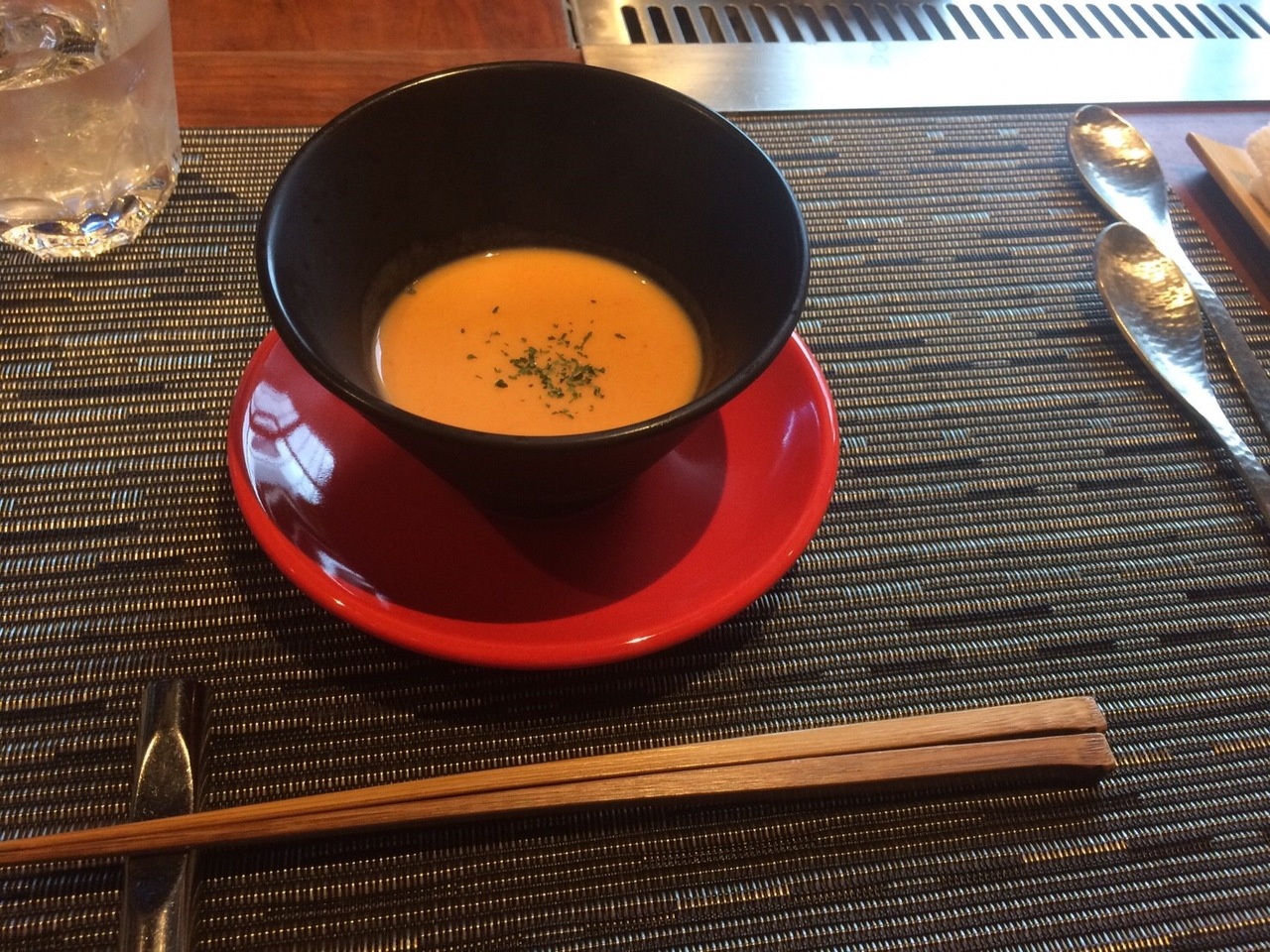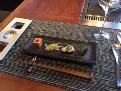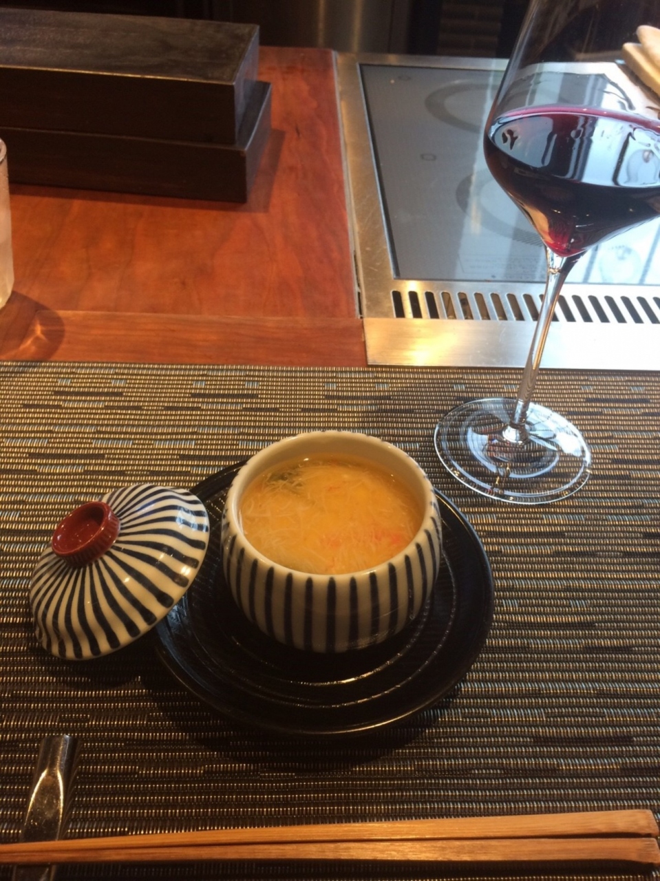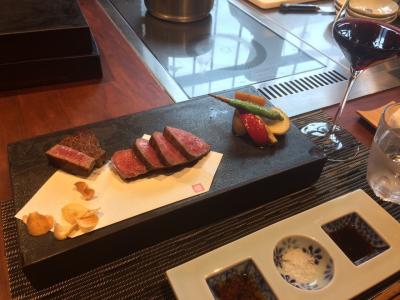料理は、和の前菜から始まり、パプリカスープ、鯛の茶碗蒸し、特選A5級の伊万里牛ステーキ(モモ100gか サーロイン80gか ヒレ60gのいずれかをチョイス)、そして、嬉しいのは釜で炊き上げた銀シャリ米からお味噌に至るまで和テイストで大満足。