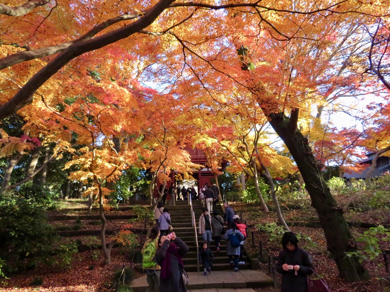 通称あじさい寺と言われる程、紫陽花や菖蒲池が有名なお寺ですが、山門の奥につづく、赤や黄色のモミジに感動しました!