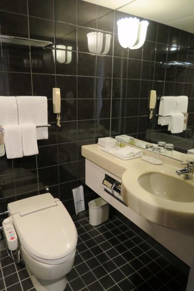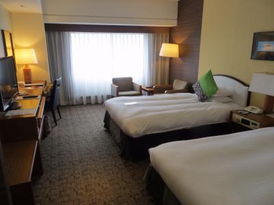 客室は、低層階山側だったのでビルばかりで景観が良いとはいえませんが、ツインのシングルユースにして頂けたので広々で快適でした。冷蔵庫内の飲み物は全て有料。クルクルドライヤーは貸して頂けましたが、コテはありませんでした。