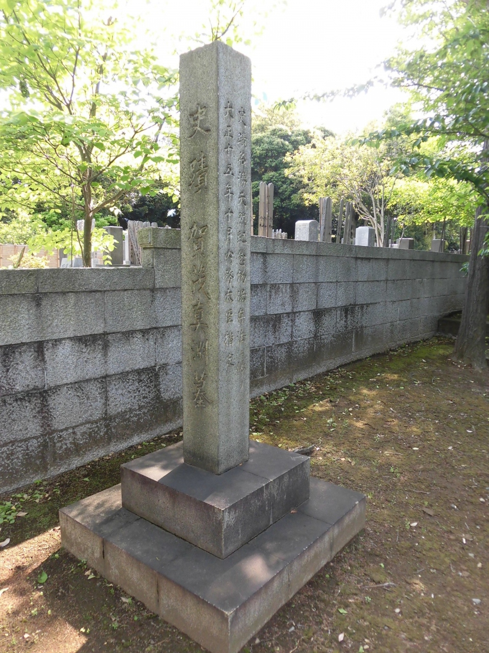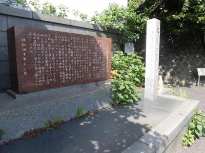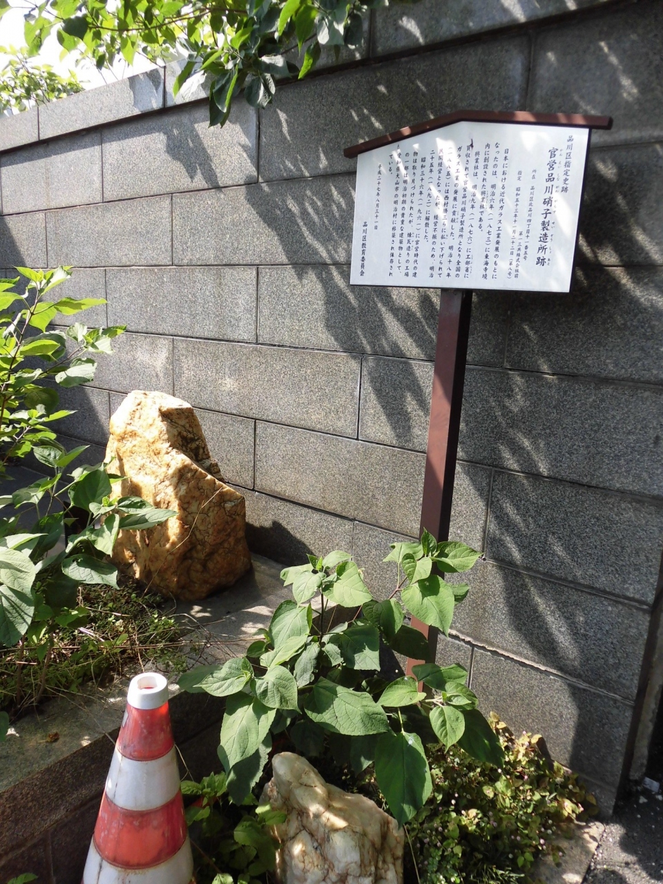 品川の東海寺墓地に向かう時に、墓地に入る道の脇に、石碑が立てられていました。明治のころ、この場所でガラス製造を行っていた史跡で、案内板とともにガラスの原料となったと思われる石も置かれていました。ただ、東海道線と山手線に挟まれた場所なので、人通りもなく、旧跡を見に来る人は少ないだろうと思いました。