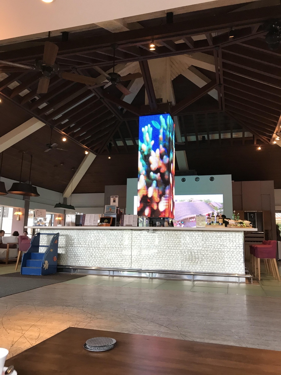 クラブメッドに勝手に夢を持っていて、いつでも何か食べられると思っていたのですが、一日に少しだけ空白の時間帯があり、バーは開いていて飲み物は飲めるのですが食べ物がないという時間帯に着いてしまい、戸惑いました。結局部屋のカップヌードルミニを食べることに。