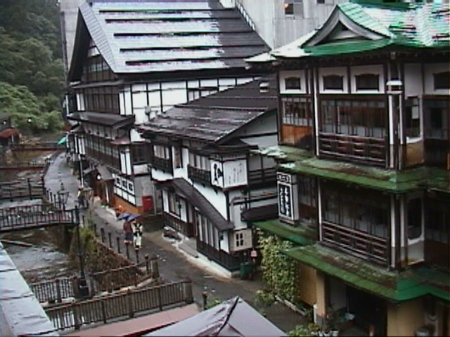 絵葉書やガイドブックなどでは、延々と続いているように錯覚するが、実際はほんの数百メートルの間、まるで映画のセットのように川の両側に十数軒の旅館が並んでいるだけなので、あまり大きな旅館街を想像して行くとガッカリするかもしれない。