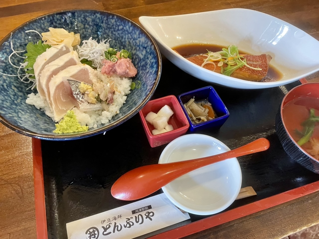 金目鯛の煮付けと海鮮丼のグルメセットで伊豆の味覚を楽しむことができます。お味は観光地にある食堂という感じでした。- 旅行時期