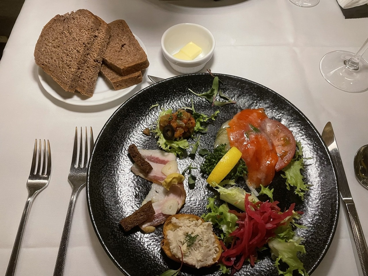 ウクライナ料理を食べに行きました。ウクライナ料理コースをオーダー。前菜の盛り合わせ、ボルシチ、ロールキャベツ、食後のドリンクがセットでした。別オーダーでデザートにウクライナチーズケーキを注文。カッテージチーズがベースのさっぱりとしたチーズケーキで美味しかったです。
