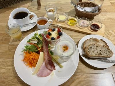リニューアル後、初めての訪問。週末限定のモーニングを食べに行ってきました。オーダーしたのはパンを楽しむごちそうプレート。パンに合うおかず、ジャム、食べ放題のパンがセットです。パンはキッキンに行き好きなものを選ぶとトーストして渡してくれます。
