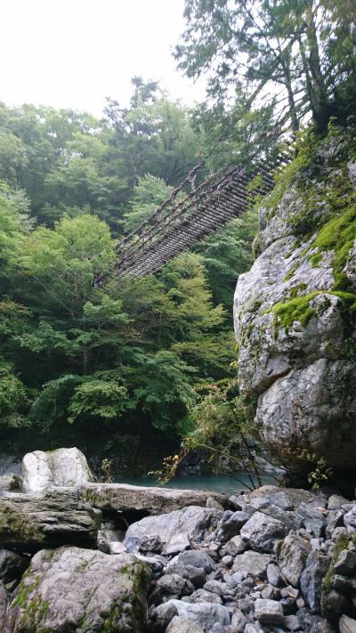 下山後、途中で第2かずら橋に立ち寄り。それほど高くはないけど、下が丸見...