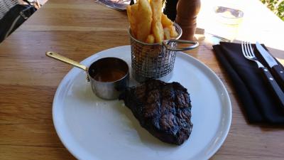 お昼ご飯は、ステーキに。ランチセットで、意外とリーズナブルな値段。
