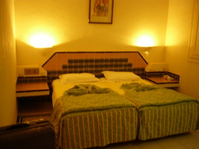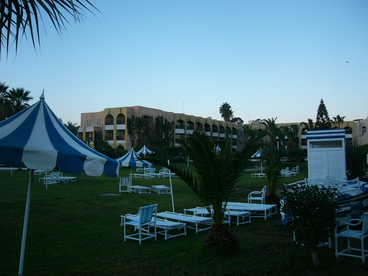 スース郊外のリゾート地ポート・エル・カンタウィにあります。海のすぐ近くでプールにスパもありました。テニスコートやバレーボールコートもあるらしい。リゾートホテルです。ホテルの中にチュニジアンカフェがあって、水タバコを吸えるらしい。部屋はちょっとせまめ。部屋に入ったらタバコの吸殻が落ちていてビックリ。ちゃんと掃除してもらったけれど・・・
