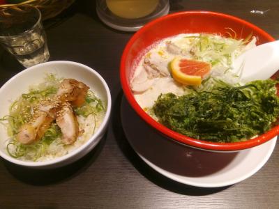 太陽のトマト麺の本店、錦糸町店です。が、食べるのはトマト麺ではなくてアオサ鶏白湯麺。たしか、太陽のトマト麺ができる前、アオサ鶏白湯麺が名物のお店だったような気がします。煮麺のような細麺にアッサリのスープ。グレープフルーツを絞ると、味が変わり、それもまた美味!たまに無性に食べたくなります。