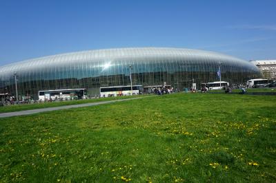 海外の駅前再開発だとバスやタクシー乗り場が地下にあって、雨や雪、台風などの天気が悪い日も乗り降りや待つのも楽ですが、ここは地上にあって、後付けで駅舎からガラス屋根を延ばしているのが残念です。- 旅行時期