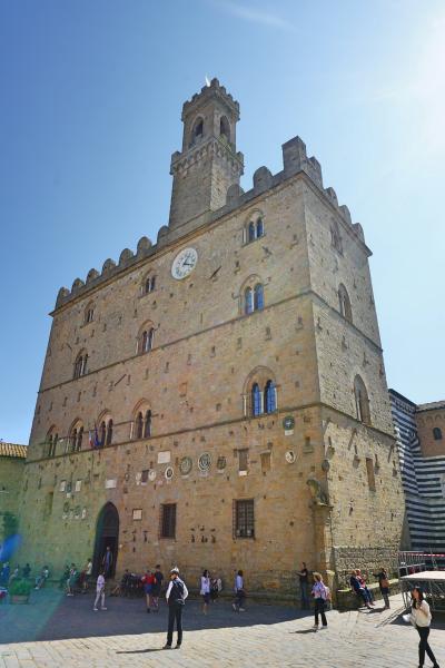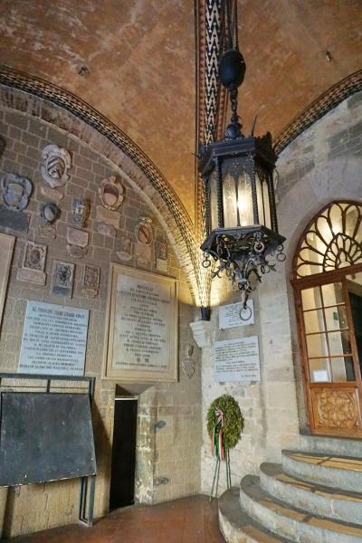 ヴォルテッラ旧市街の中心広場、プリオーリ広場に面して建っているプリオーリ宮は、現在では市庁舎として使われています。外観はフィレンツェのヴェッキオ宮殿に似ていて、フィレンツェの影響があるのかもしれません。内部の壁には沢山の紋章が貼ってありました。
