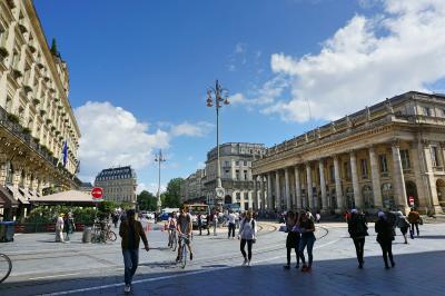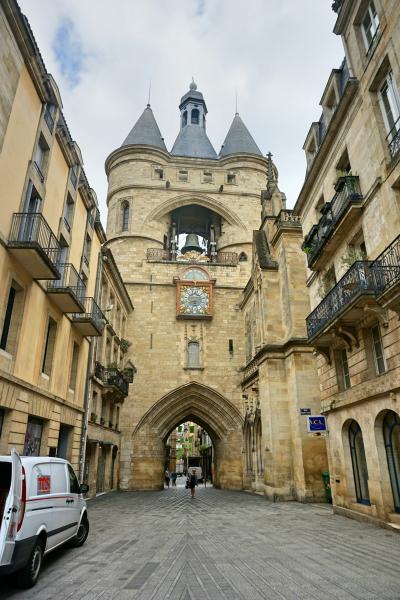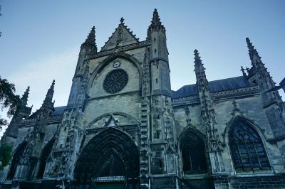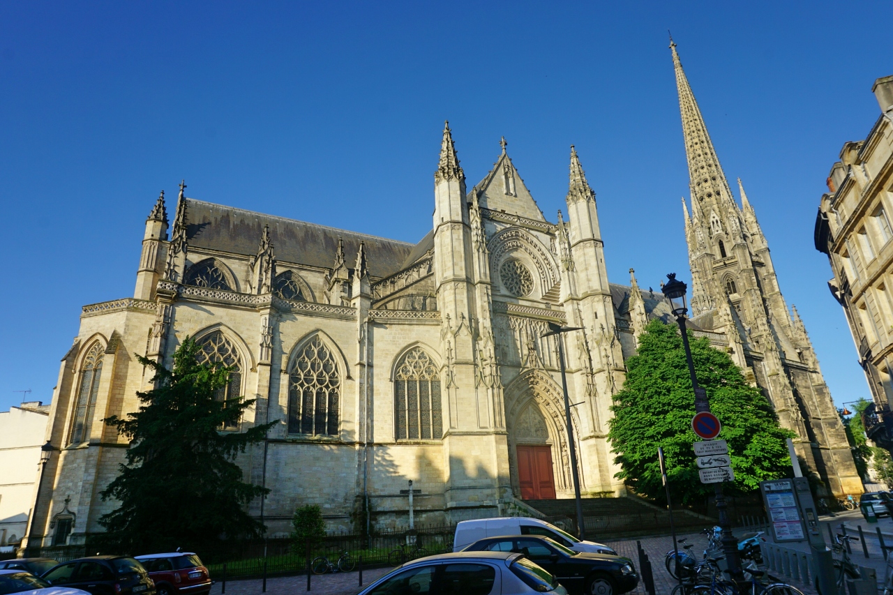 ボルドーの朝の散歩で立ち寄りました。15世紀末から16世紀に建てられたゴシック様式のバシリカ式教会堂で、デュピュール広場から朝日を浴びた大聖堂と鐘楼をカメラに収めることができました。ボルドーの撮影スポットの一つなので、ぜひ訪れたいものです。西側ファザードには時計が付いていました。