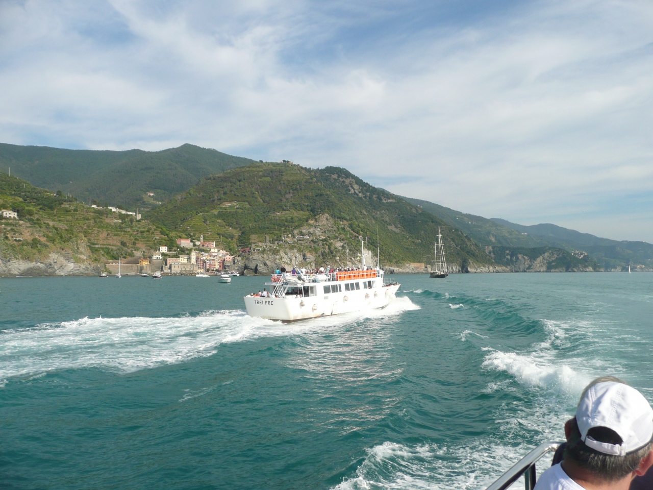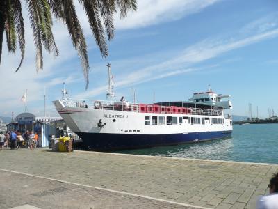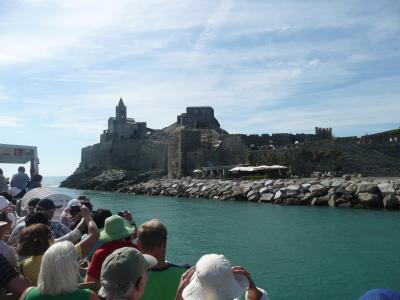 ラ・スペツィアの港から、ポルトヴェーネレ経由、チンクエテッレの各村に寄航する遊覧船が出ています。波が高いときは欠航になるようですが、幸い秋晴れの良い天気で、紺碧の地中海からチンクエテッレの村々を観光することができました。