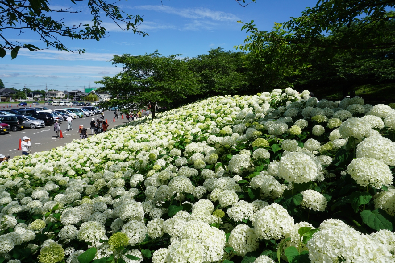 東武日光線で幸手駅下車して、徒歩で権現堂堤の幸手あじさいまつりの会場まで行きました。バス便が少なく、ちょっと不便でしたが、ボランタリーの方があじさいをよく手入れされていて、お寺とかのあじさいより、綺麗でした。駐車場近くの斜面に白いアナベルの絶景が広がっていて、とても良かったです。