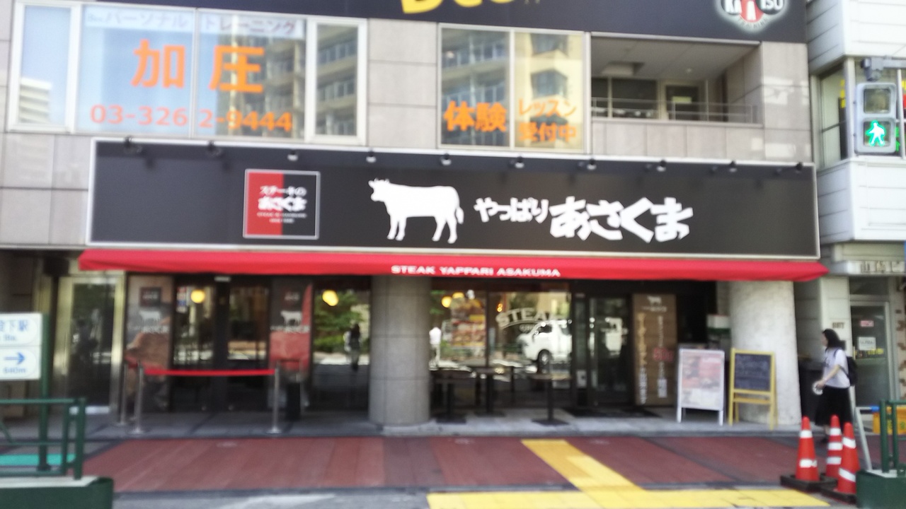 株主優待券の期限が迫っていたので、やっぱりあさくまに初めて入ってみました。駐車場は無いので、道路脇の有料駐車スペースに停めて入店しました。大学生が多いカジュアルな雰囲気で、韓国のお客様もいらっしゃいました。久しぶりに牛肉350gを鉄板で頂きました。若者向けのお店ですねぇ。