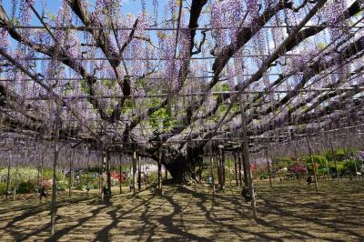 藤の花で有名なあしかがフラワーパークに初めて訪れました。藤の花だけでなく、手入れの行き届いた春のお花が一杯、植栽されていて、とても綺麗でした。うす紅の棚が満開で、大藤、八重藤、大長藤、むらさき藤棚も素敵でした。うす紅橋では地元のテレビ局が録画撮りをしていました。