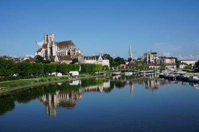 ポール・ベール橋の上からは、ヨンヌ川越しに美しい構図の写真が撮れ、鏡のような川の水面にはサン・テチエンヌ大聖堂を中心とした旧市街が写って、とても素敵な町でした。- 旅行時期