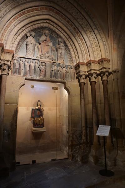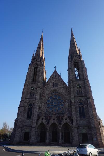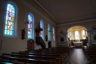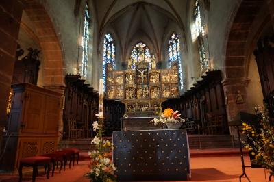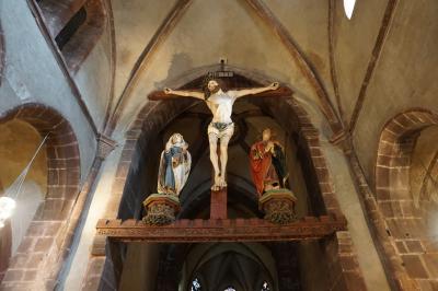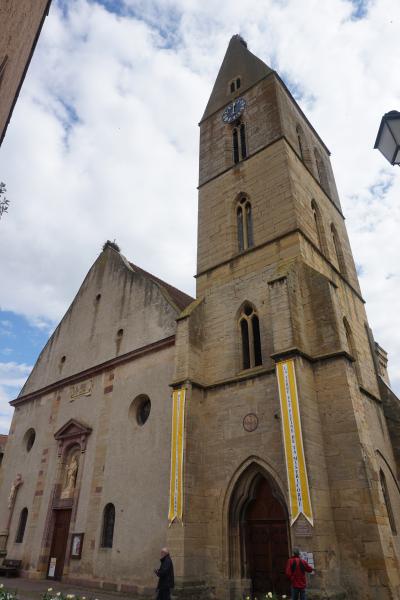 エギスハイムを散策している際、立ち寄りました。教会は11世紀に建てられ、ロマネスク様式と初期ゴシック様式が混在しているようです。ステンドグラスが綺麗な上、半円形の見事な装飾的な壁面「タンパン」の下の「開くマリア」像など見所も多く、ぜひ立ち寄りたいものです。