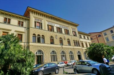 グイドモナコの彫像がある広場を横切って、グイドモナコ通りをまっすぐ進んで上り坂が始まると左手に中央郵便局が見えてきます。アレッツォ旧市街の中で、アーチ窓のレンガ造りの立派な建物は目を引きます。