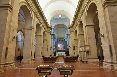旧市街の中心、グランデ広場にある大聖堂です。中は素朴な装飾で、落ち着いた雰囲気の大聖堂です。主祭壇の聖母被昇天はダッデーオ・ディ・バルトロ作の名作ですが、あいにく修復中でカーテンがかかっていました。もう一つの見所、聖母子はぜひ写真におさめたいドゥオーモの信仰のより所です。休憩がてらに訪れることをお勧めします。
