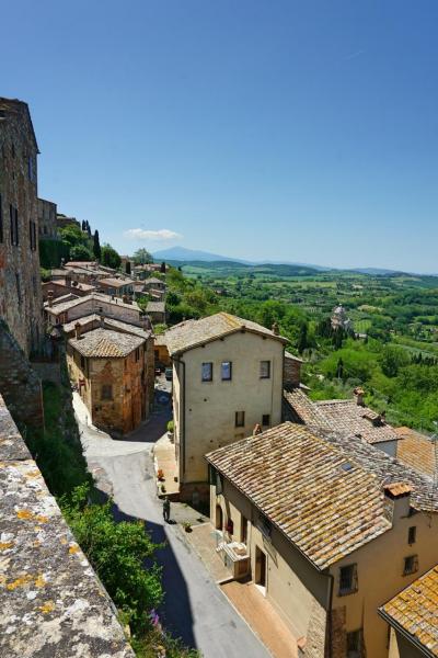 世界遺産として登録されている「ピエンツァ市街の歴史地区」は、ピウス2世広場を中心に東西400mに延びるロッセリーノ通り沿いに旧市街が良く保存されています。路地を入るとその先にオルチャ渓谷が垣間見れ、とても素敵な雰囲気です。
