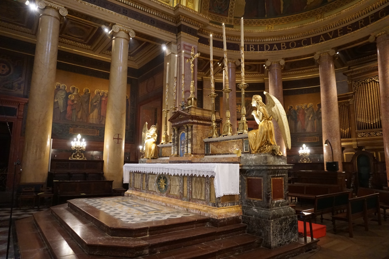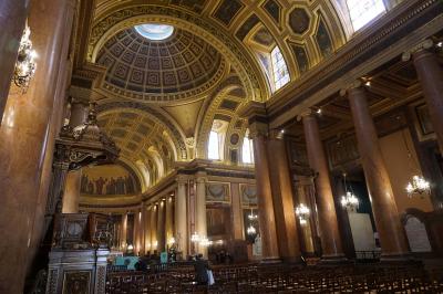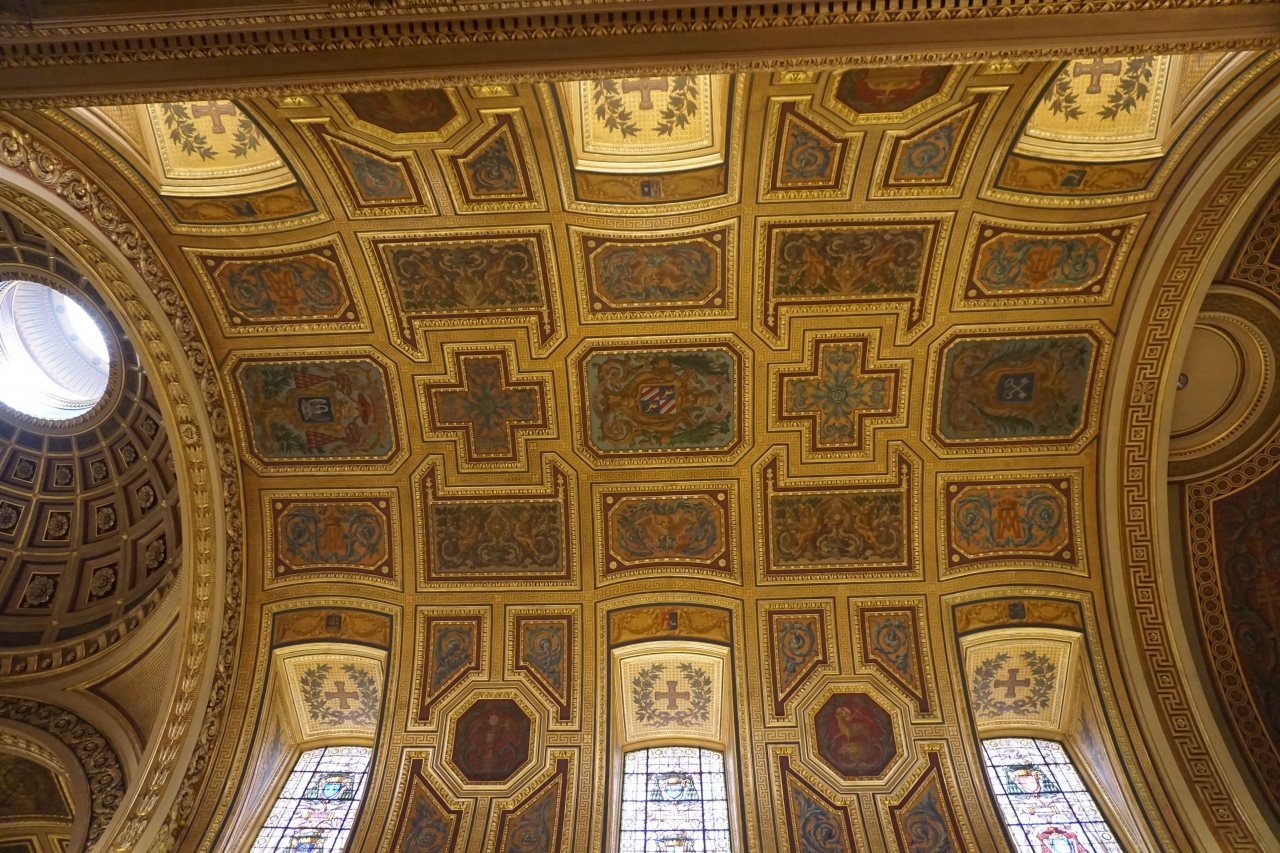 1704年完成の壮大なファザードは、19世紀後半に作られた身廊や内陣よりも古い時代のものだそうです。荘厳な雰囲気のもと、日曜日のミサが開催中だったので、終わってから見学しました。イオニア式の円柱とアーチ状の天井が素晴らしかったです。