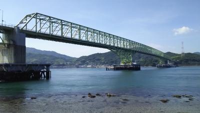 レンタカーで何十年振りに本州と周防大橋をつなぐ大島大橋を渡ってみました。この橋が架かる大畠瀬戸は流れが早く、両方からの海流がぶつかって白波が立っていました。大橋側には無料駐車場があって、海端に降りると橋の全景を写真に撮る事ができるのでお勧めです。