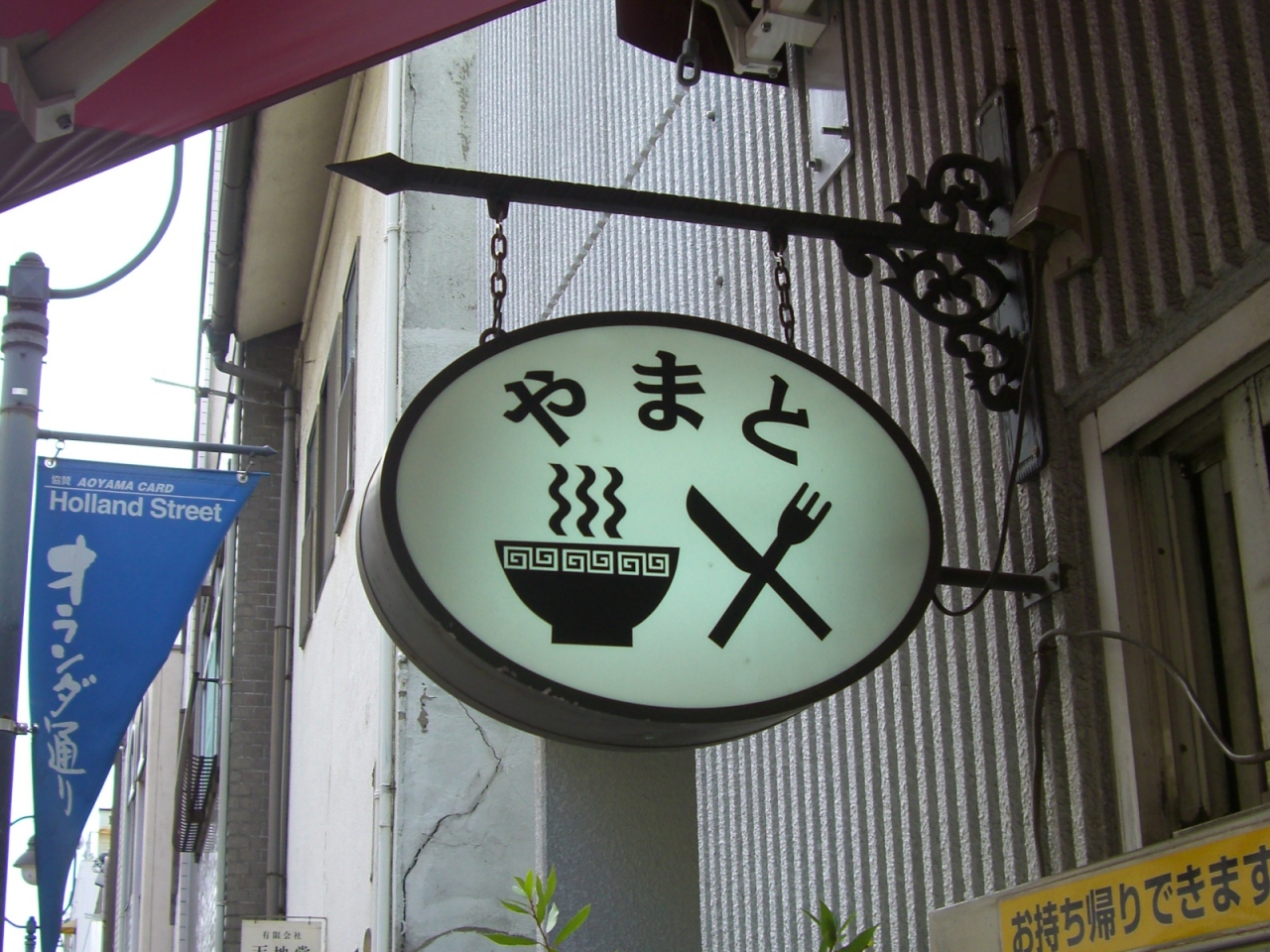 岡山市内の後楽園からも程近い城下エリアのやや南側、表八ヶ町(アーケード街)の一本東の筋にオランダ通りと言う通りがありそちらに「やまと」があります。