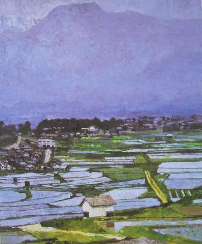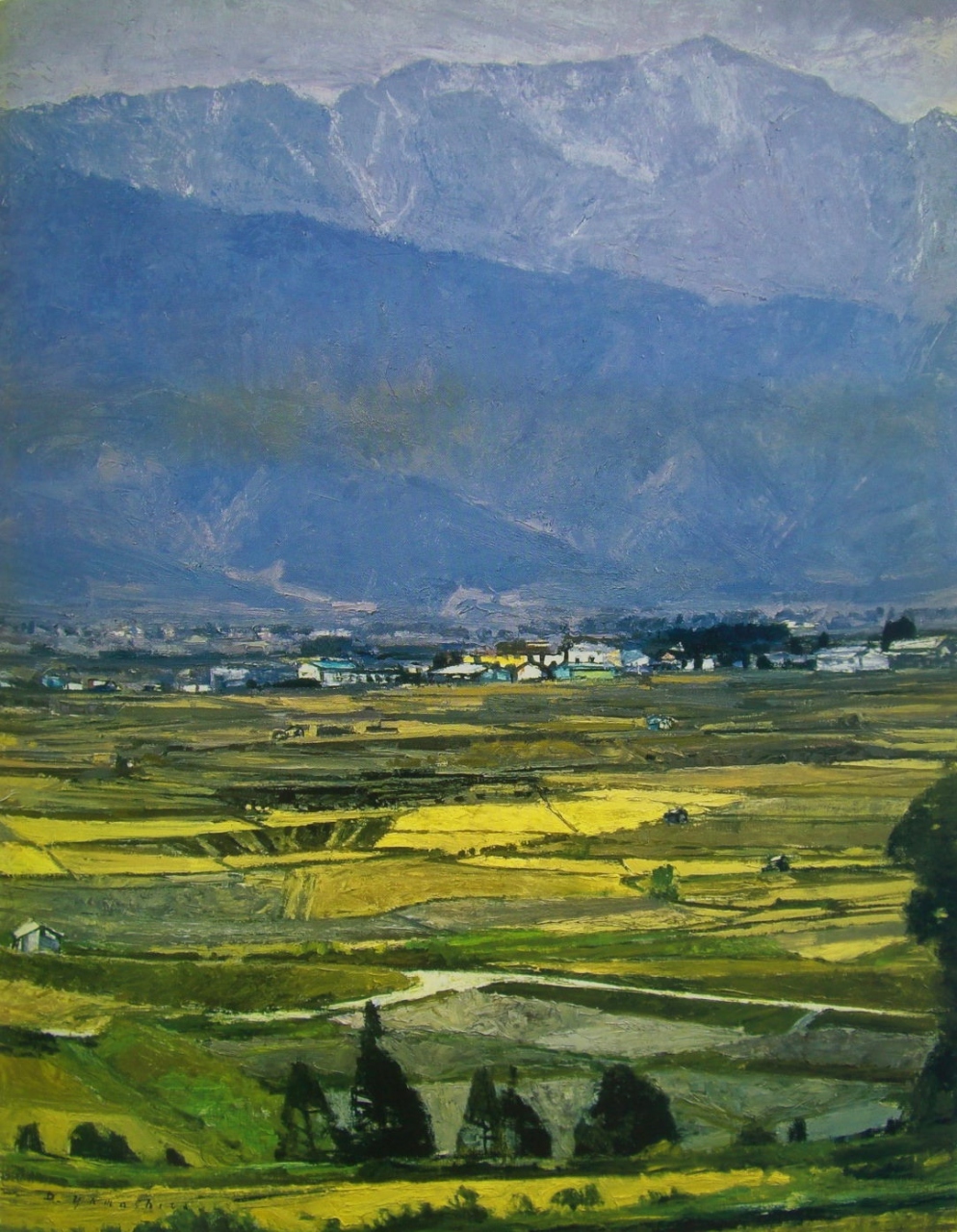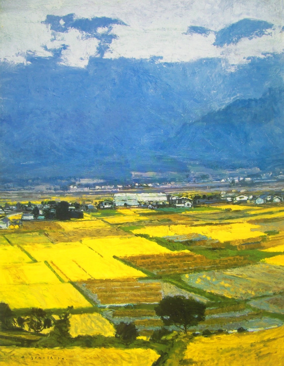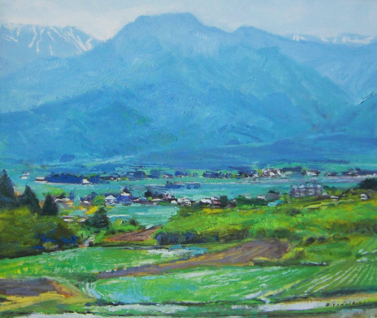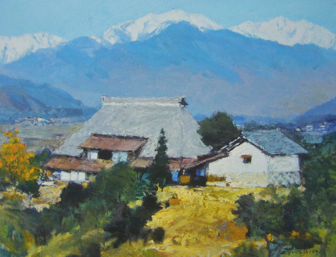 戦後の北海道~鹿児島まで農村風景や田園風景に惹かれ全国を歩き回り丹波や東北の茅葺きの民家、出雲の築地松に砺波の散居村、信州や能登の棚田の風景等人と自然の織りなす風景の美しさに惹かれ描き続けた山下は晩年安曇野の山と田園に魅了され四季折々の景観の美しさにとりつかれ、10年通い続けて描かれた安曇野の作品がメインとなっていました。- 旅行時期