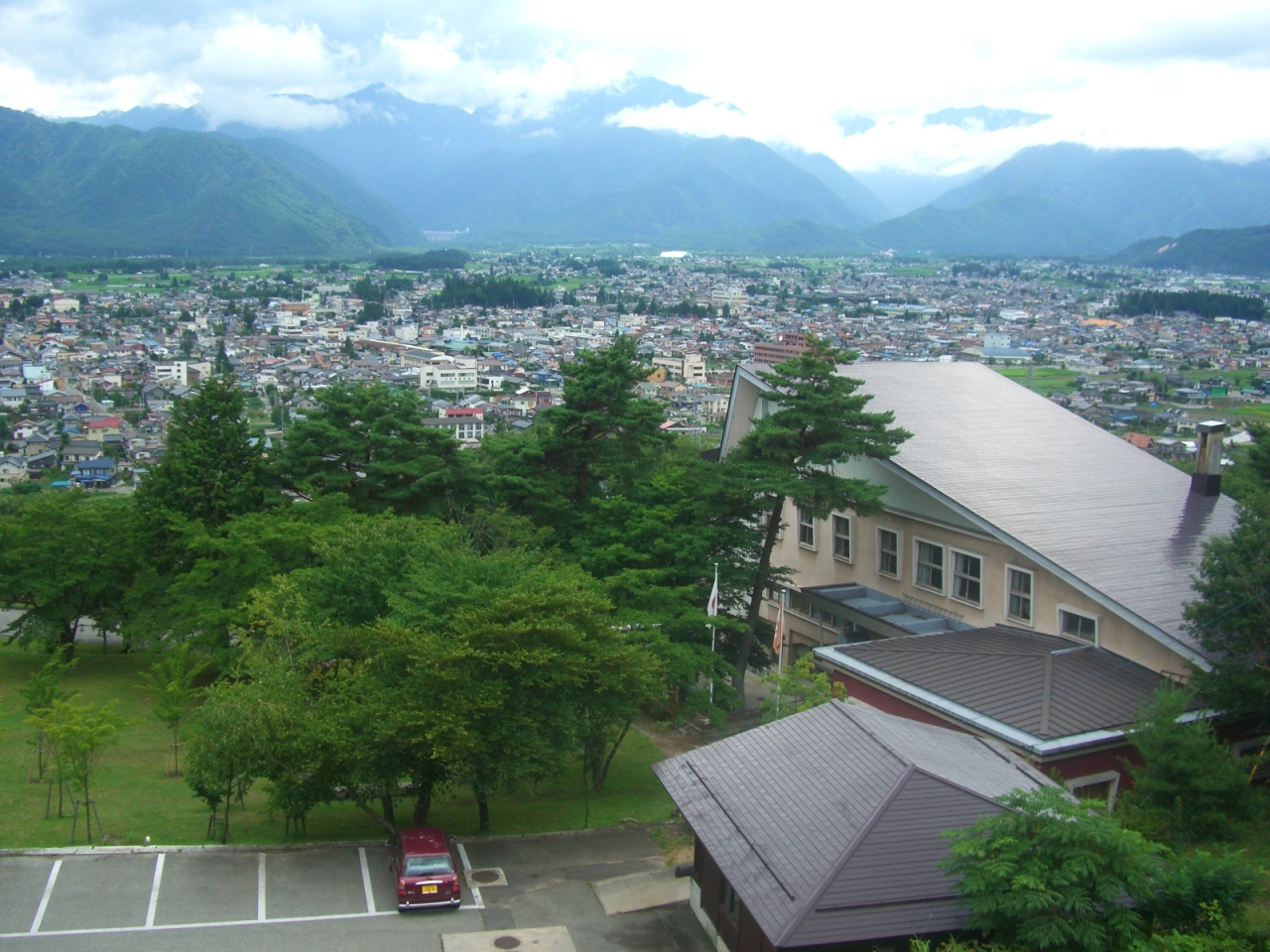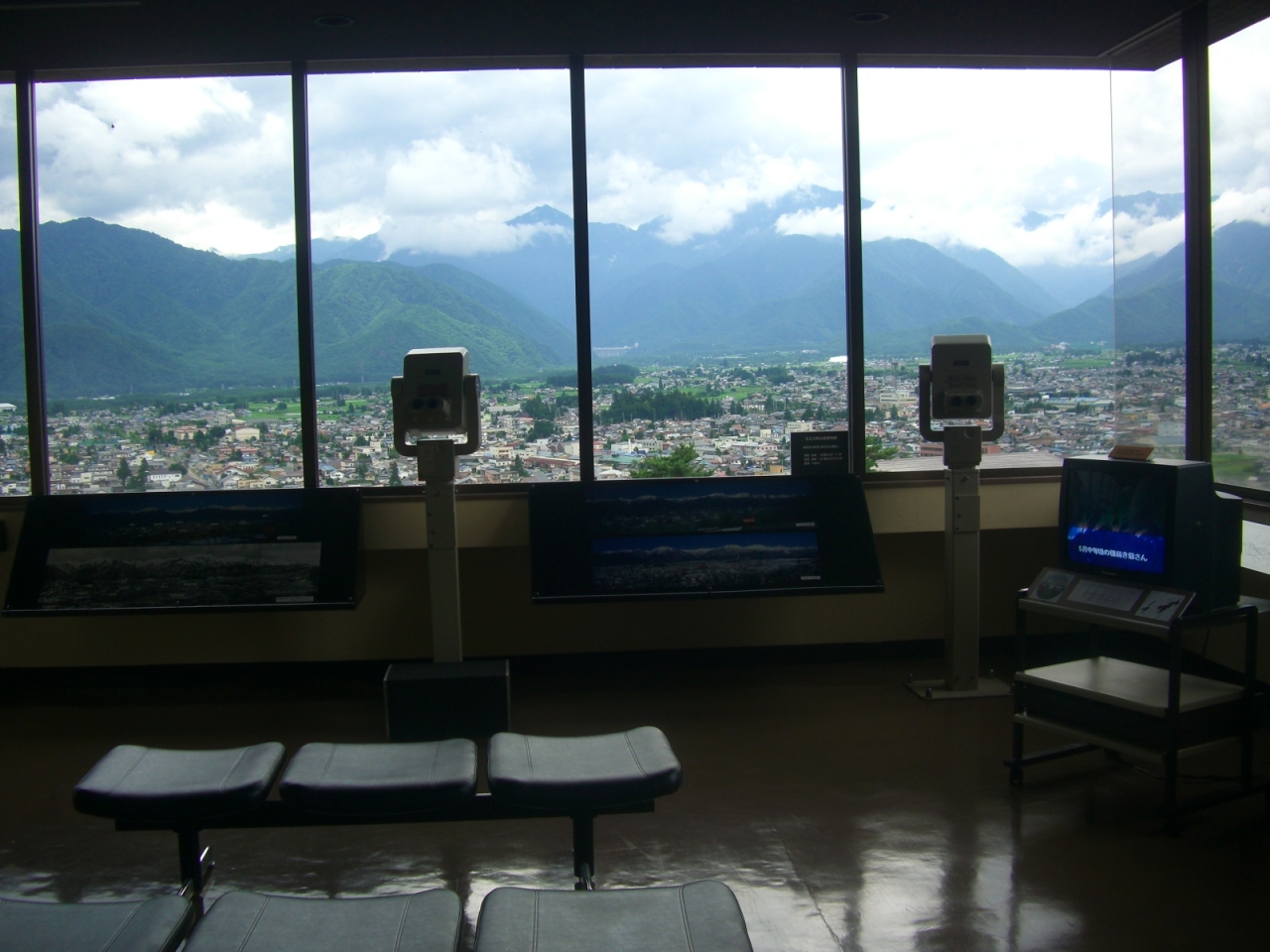 大町市街地や北アルプスの眺望はわざわざ鷹狩山の山頂まで行かなくてもこちらの最上階からでも十分展望は出来ます。
