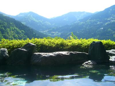 男女それぞれの大浴場(3階)はじめ、その3階中庭からケーブルカーを使用して高台の天空露天風呂(男性:雲海の湯/女性:樹海の湯/混浴:筍の湯)にも行く事が出来ます。