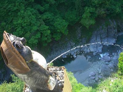 またこちらの展望テラスからは小便小僧ならぬ小便狸が・・深い祖谷渓谷の眺めも素晴らしいです。