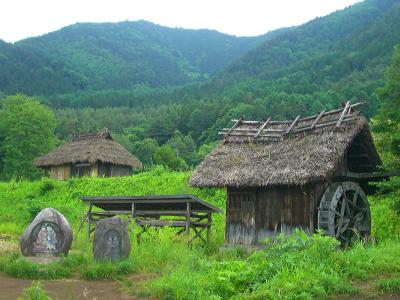 NHKの朝ドラ「おひさま」の中で頻繁に登場する道祖神&水車小屋のある周辺の景色を載せました。