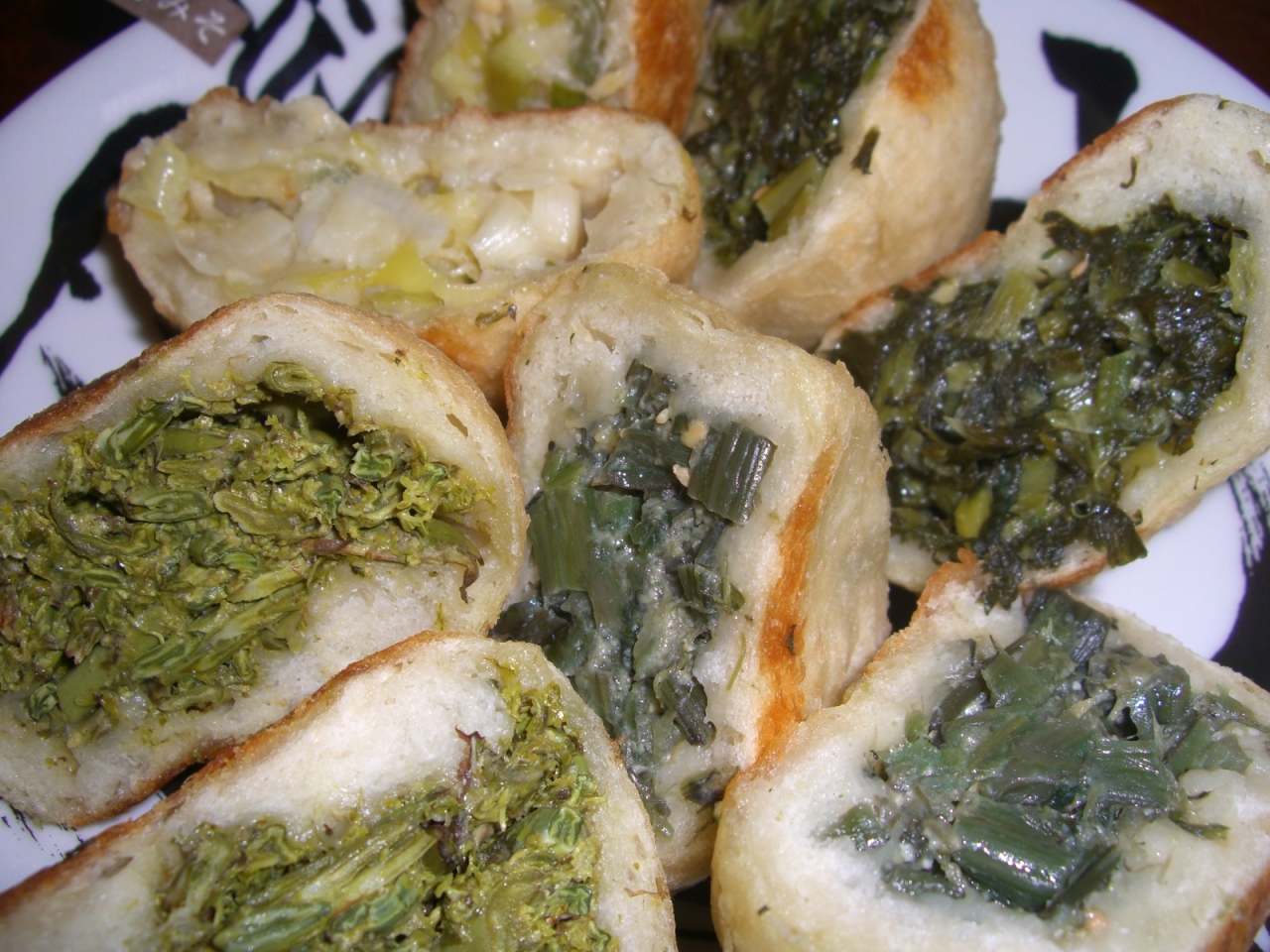 小麦粉&蕎麦粉使用で焼いたお焼きは凄くもっちりとしていて中身の山菜も野沢菜や切干大根はじめ季節の山菜等多種のお焼きが揃っていました。