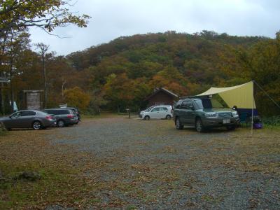 紅葉シーズンと言う事もあり当日は一番乗りのつもりで訪れた立烏帽子駐車場でしたが、テントを広げて前泊?したと思われる地元広島ナンバーの先客がいました。