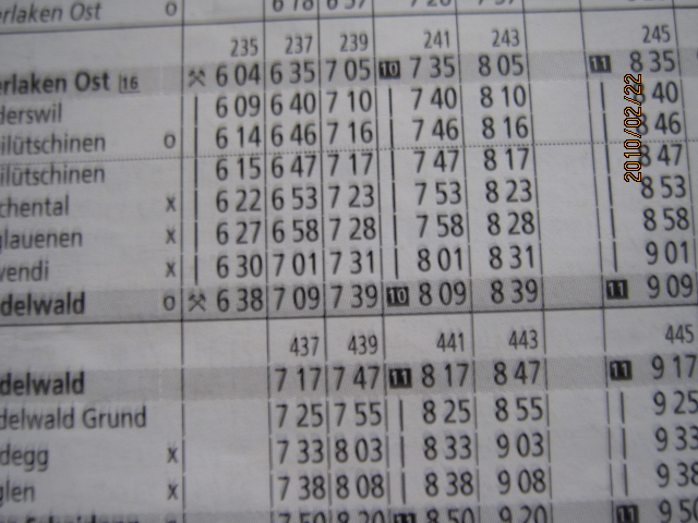 添付写真はグリンデルワルド経由の朝の時刻表ですが、30分に1本位の割合で出ています。- 旅行時期