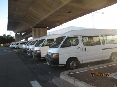 シドニー市内の主要なバックパッカーズのホステルからは定期的に空港までのシャトルバスが5時台から出ています。30分おき位に出ています。